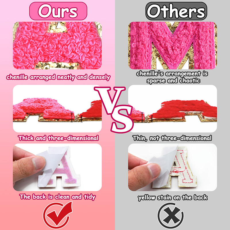 Excellent Quality: Our stick on letters patches are made of high-quality chenille with self-adhesive on the back, Chenille is evenly distributed and densely distributed, washable, durable, unfading, and soft and comfortable to feel.Many Usages: These iron on letters patches approx 2.17" (5.5cm)in height, which can be used for most items. You can use these letter stickers to personalize your clothes, purse, laptop, phone case, shoes, mug, notebook, etc.Easy to use: Peel off the protective film on the back glue and stick anywhere you like. If you plan on washing these patches, You'd better sew them on.Satisfied Guarantee: Try our best to provide great purchase service without any worries for each customer. If you have any problems, please contact us in time to help you solve them soon. -