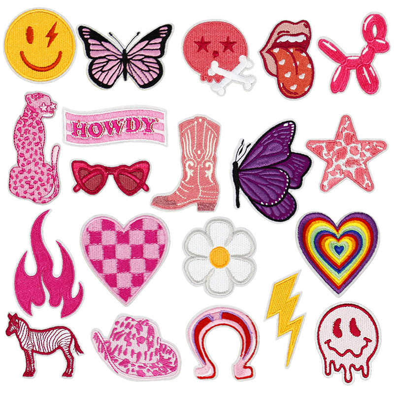 Western cowgirl iron on patches: The package includes 20 pieces of cowgirl patches , like howdy, cowgirl hat boots, Glasses, heart, star, butterfly, flame, lips, leopard, lightning, balloon dog, enough patterns to meet your diverse needs of daily outfits.