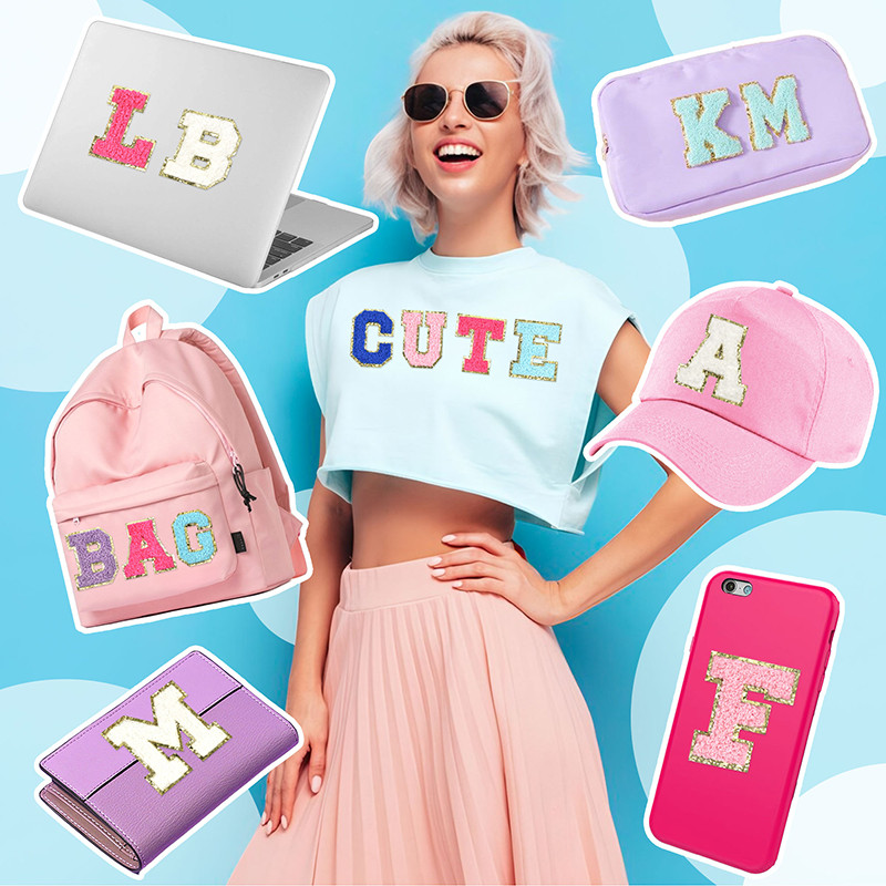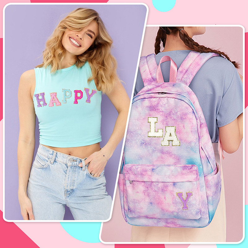 Adhesive Letter Patches: The package included 10 pieces chenille letters patches with 5 different colors, rich colors Meet your different matching needs, Each letter patch with gold glitter edge, which makes your crafts personalized and eye-catching.