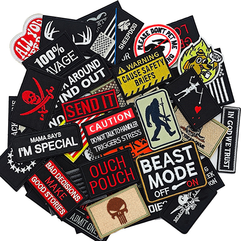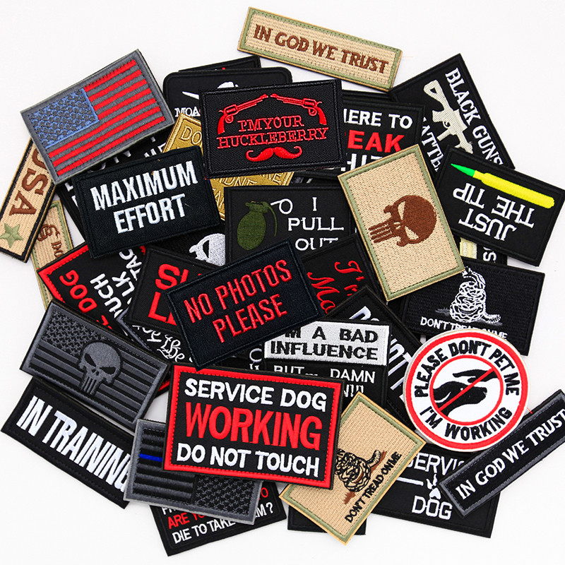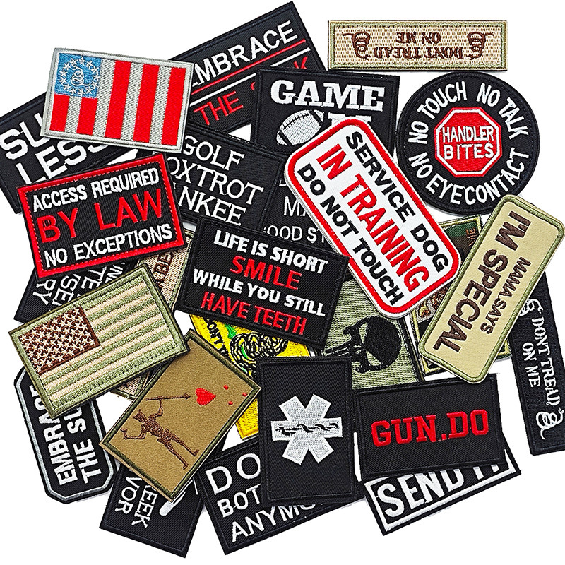 Package Included: 12 pieces of Random funny tactical military morale patches, such as American flag patches, meme patches, service dog patches, and some interesting words patches.Our embroidery patches styles are constantly being updated, not just those in the pictures, more fun patches are waiting for you to discoverHook Fastener Patch:Hook and loop design that you can fasten the patch on jackets, backpacks, hats, and some tactical gear, etc. You can also sew the loop side on the surface you want to past on, then apply the patch. Great for decorating or repairing clothing.3D Embroidery: 100% Full Embroidery Patch,top quality, comfortable, durable and tough,easy to remove and wash.Wide Applications: These cool military patches are perfect for Hats, Caps, Bags, Jackets, Backpacks, Military, Airsoft, Cosplay, CS, Tactical Exercise, service dog harness vest, and other outdoor activities, or just for your collect hobbies. -