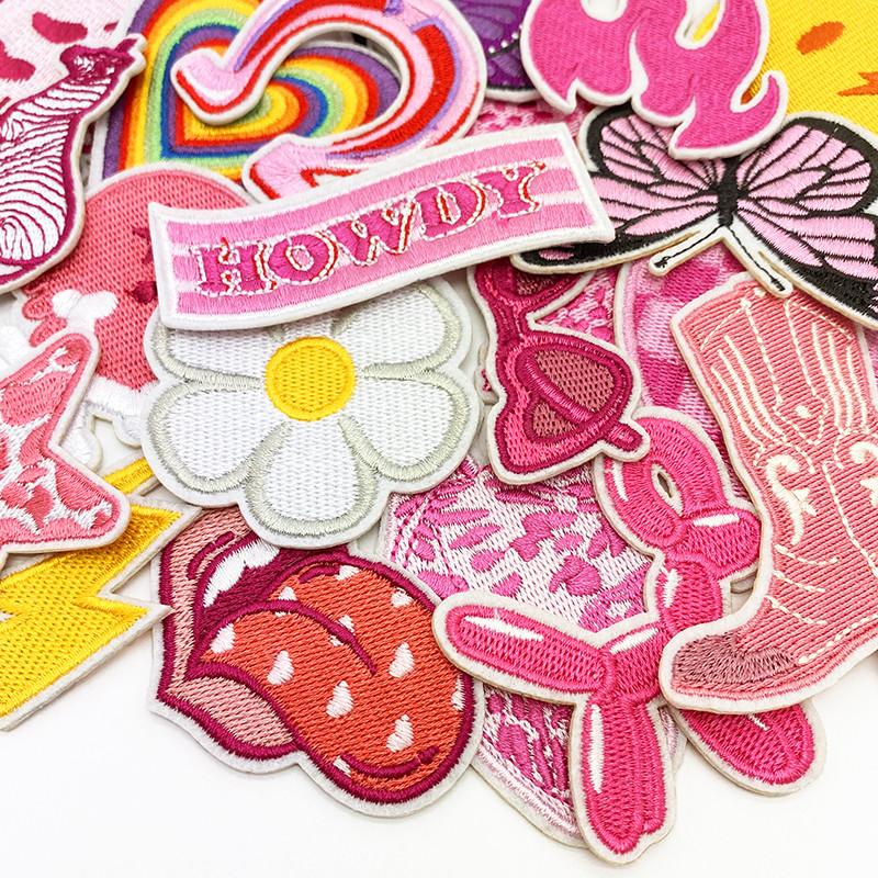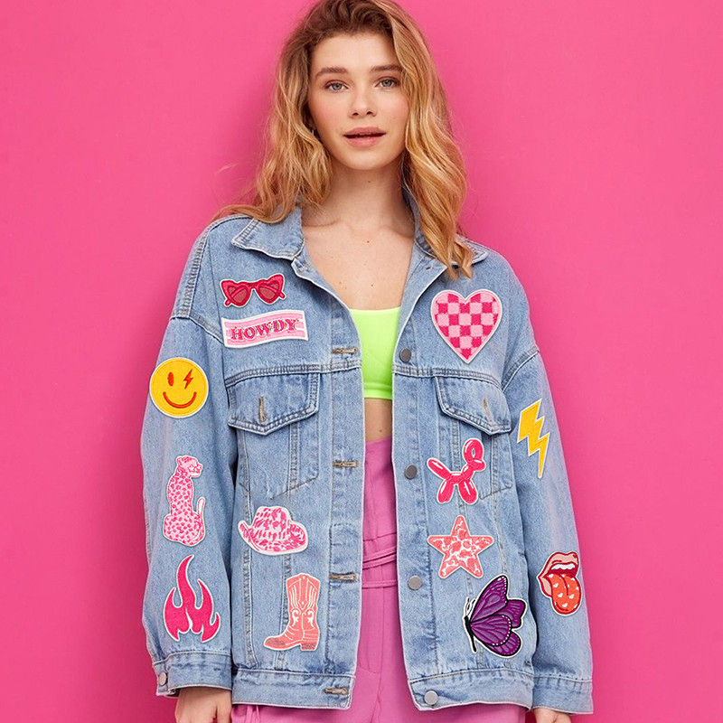 Western cowgirl iron on patches: The package includes 20 pieces of cowgirl patches , like howdy, cowgirl hat boots, Glasses, heart, star, butterfly, flame, lips, leopard, lightning, balloon dog, enough patterns to meet your diverse needs of daily outfits.
