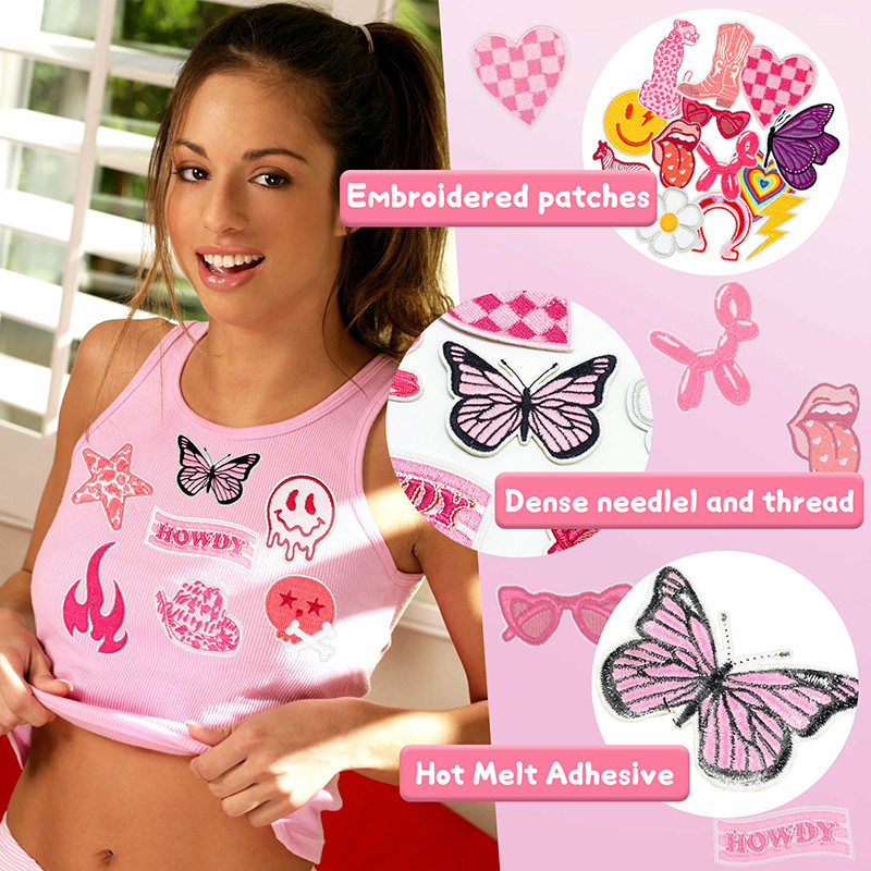 High-quality Materials: The pink preppy iron on patches are made of quality polyester silk thread, nonwoven fabric, and polyester fiber with hot glue on the back; Each country girl patch features beautiful and lasting embroidery, is easy to stick and sew, and is appropriate for clothes or any materialEasy to Use: Put the embroidered iron on patches in the target position, put a thin cotton cloth on it, adjust the temperature of the iron to about 160-180 degrees, iron it for 20-30 seconds, then let it cool, or sew on the edge of the patch with needle and thread to stay away it from falling off.Decorative Repair Patches - You can use these preppy patches to cover holes/stains or as decorations for DIY creative and personalize backpacks and clothing like jeans, jackets, T-shirts, socks, hats, bags, and shoes.Great DIY Gift: Breathe a different life into your clothes with our Y2K patches, you also can use them to DIY products and take them as gifts to family or friends. -